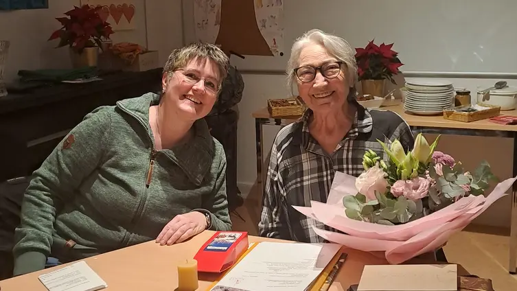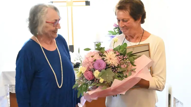 Die Treffen der Ev. Frauen werden seit 35 Jahren von Helga Radon liebevoll vorbereitet und sind thematisch immer auf der Höhe der Zeit. Helga Radon wurde von der Vorsitzenden des Kirchenvorstandes, Gabi Schmidt, für diese Arbeit und für ihre 40-jährige Mitarbeit im Kirchenvorstand mit einer Urkunde und einem großen Blumenstrauß geehrt.