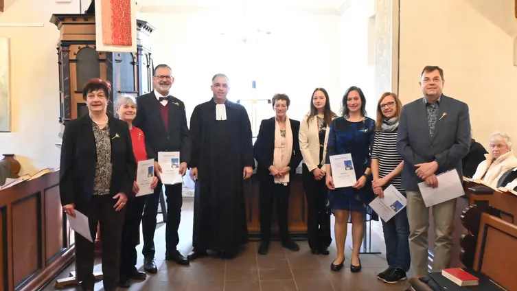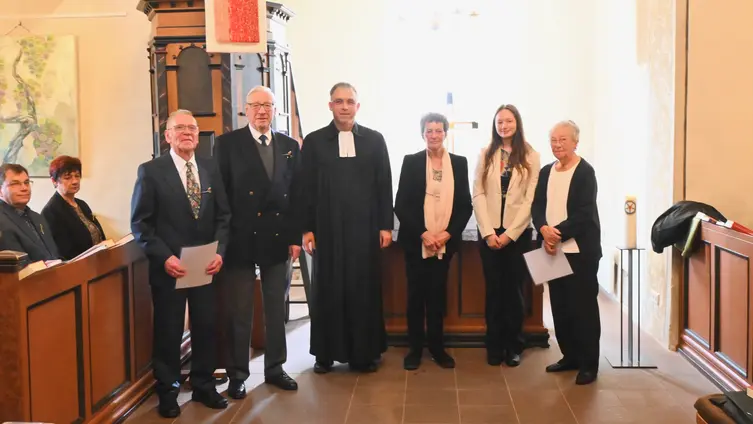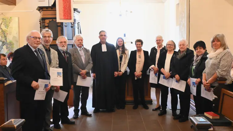 Diamantene Konfirmation (60 Jahre): Gabriele Bücher, Rita Christ, Ullrich Deuse, Ria Dörr, Annelie Krüger, Anneliese Sperle, Ernst Weihrauch, Fritz Wolf, Jürgen Ziegenbalg