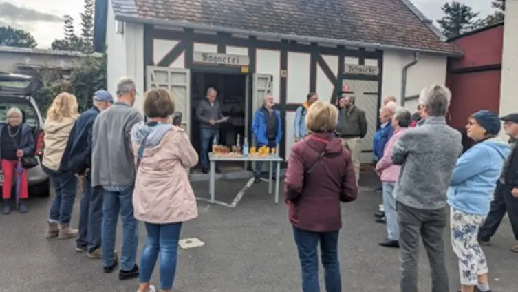 Seit Sommer stand der Herbstausflug am 4. Oktober fest. Einige Tage davor erfuhr jeder Teilnehmer die Abfahrtzeit. Denn die Fahrerin des Busunternehmens aus Hofheim- Wildsachen fuhr von Breckenheim über Medenbach nach Auringen und Naurod, wo an der Kirche um 9.30 Uhr die letzte Gruppe in den Reisebus einstieg. 30 Personen nahmen teil. Pfarrer Tschöpel erklärte den Ablauf, sprach ein kurzes Gebet für den Reisetag und teilte die Speisekarte zum Bestellen des Mittagessens aus.