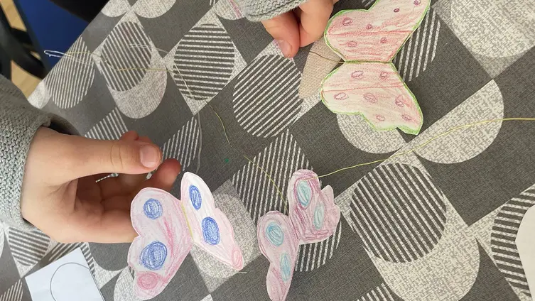 Am zweiten Sonntag wurde zum Thema „Kommt! Bringt eure Last“ die Geschichte eines nigerianischen Mädchens erzählt, das in der Schule nicht so gut mitkam. Ihre Freundinnen trösteten sie und halfen ihr durch das Angebot, mit ihr zu lernen und zu beten. Die Kigo-Teamerinnen Katja Ritte und Anna Schramm zeichneten den Verlauf der Geschichte immer neu an die Tafel. Zum Abschluss durften die Kinder Schmetterlinge basteln, da es in Nigeria über 1000 verschiedene Schmetterlingsarten gibt.