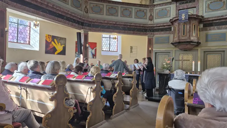 Auch die Lieder hatte die Gruppe passend aus dem Gesangbuch EG+ gewählt: „Gut, dass wir einander haben“ oder „Lobe den Herrn, meine Seele“ und zum Abschluss „Möge die Straße uns zusammenführen“ waren auch vielen Familienangehörigen bekannt, die Singenden wurden an Orgel und E-Piano von Markus Kaiser begleitet.