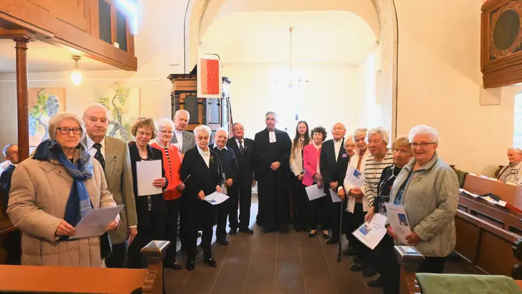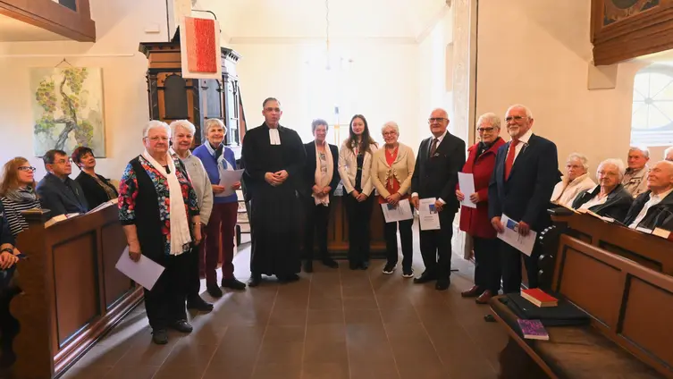 Am Sonntag, den 26.Oktober 2025 feierten 41 Jubilare ihre Silberne-, Goldene -, Diamantene-, Eiserne-, Gnaden- und Kronjuwelen Konfirmationen und erhielten dazu eine Anstecknadel als Geschenk.