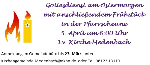 Wir freuen uns, wenn Sie kommen und mitfeiern. Im Anschluss soll es einen Empfang geben. Damit wir gut planen können, bitten wir Sie, sich anzumelden, wenn Sie teilnehmen möchten. Die Anmeldungen nimmt unser Büro in Naurod an, unsere Sekretärin, Elke Dinges, hat die Telefonnummer: 06127-61238
