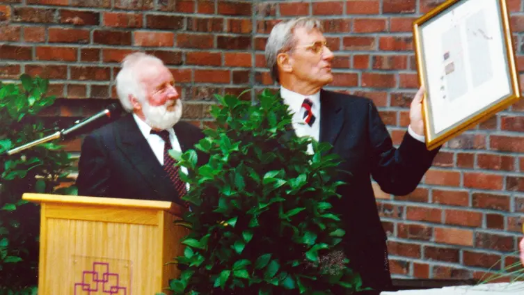 Als die versiegelten anonymen Umschläge geöffnet wurden, war unsere Überraschung groß. Der Architekt des Siegermodells kam nicht aus dem Rhein-Main-Raum, sondern aus Ulm und konnte eigentlich nicht berücksichtigt werden. Ich sagte mir: ‚Das war ein Wink von oben‘. Und auch bei der Auswahl des Bauplatzes zwischen der Tankstelle und dem Rastplatz muss Gottes Fügung eine Rolle gespielt haben. Für einen besseren Standort der Kirche konnte nicht entschieden werden! Zu meiner Freude war auch Kirchenpräsident Peter Steinacker sehr glücklich mit der Entwicklung.“